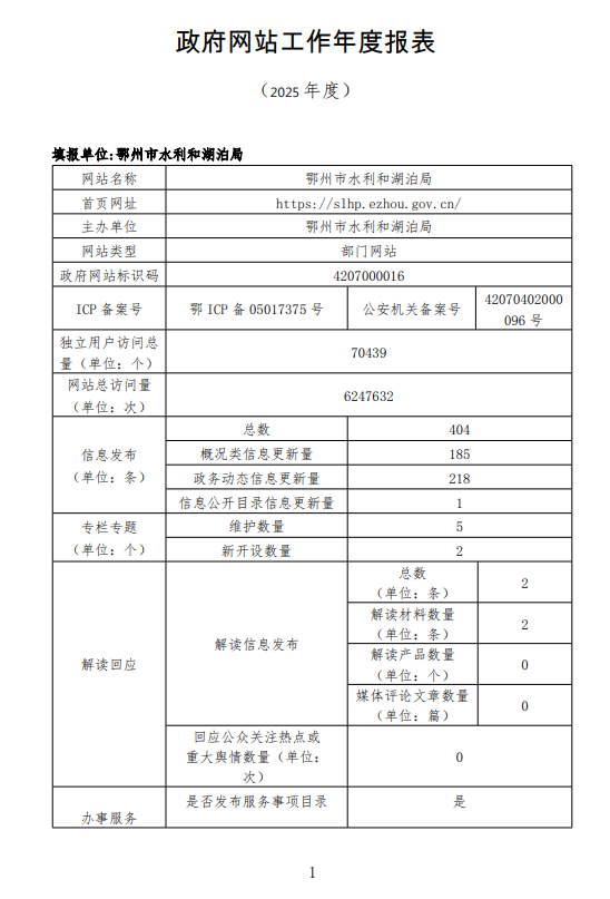 市水利和湖泊局2025年度政府网站工作报表